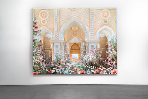 Set within the historic Al Maktoum Residence in Dubai’s Al Shindagha district, overlooking Dubai Creek, this work reimagines its arched colonnade and coral-stone walls. Lush flowers spill across the courtyard, merging the city’s maritime heritage with nature’s quiet renewal.